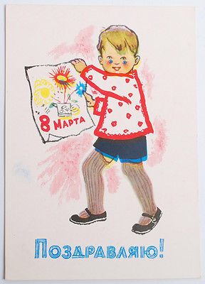 Vintage postcard 8 March Woman Day card USSR Russia 1963 Boy