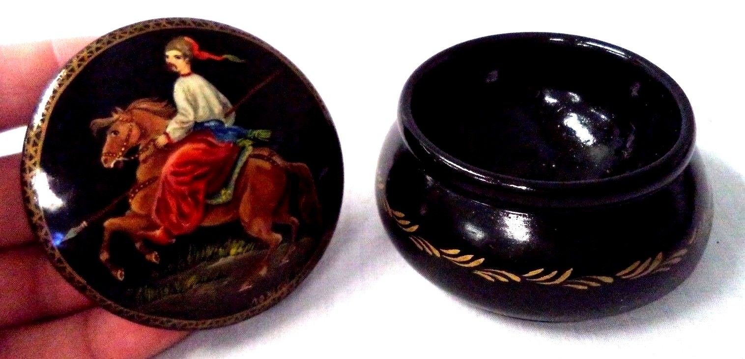 Title (ebay affiliate link): VINTAGE HAND PAINTED SIGNED RUSSIAN LACQUER HORSE WARRIOR CONTAINER!!! G3523