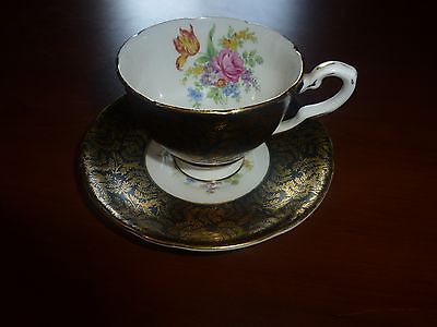ROYAL STAFFORD TEA CUP AND SAUCER STUNNING BLACK & GOLD GILT FLORAL TEACUP