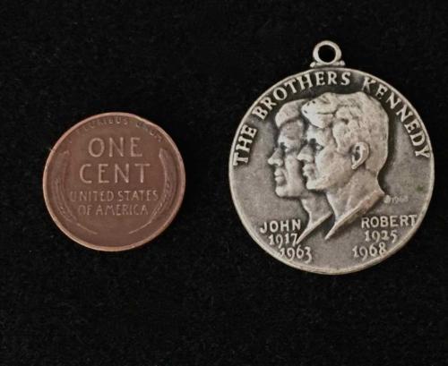 Vintage 28 x 32mm Aged Solid Silver Tone Metal The Brothers Kennedy Coin Charm