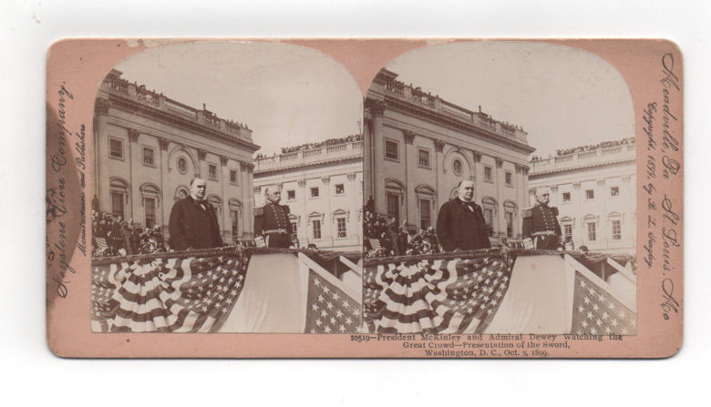 Title (ebay affiliate link): 1899 Stereoview Card of President William McKinley Admiral Dewy Washington DC