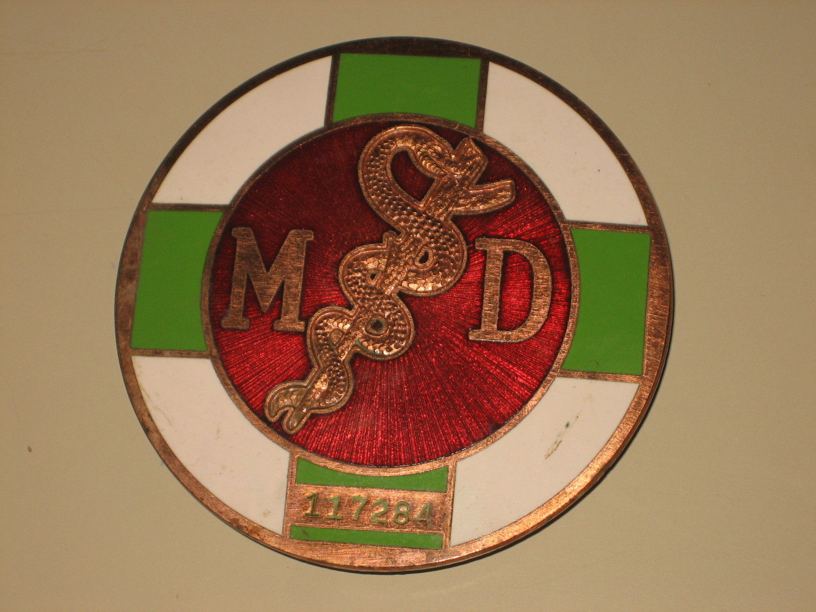 1925 AMERICAN MEDICAL ASSOC. PORCELAIN ENAMEL BRASS ROD OF ASCLEPUIS TAG TOPPER!