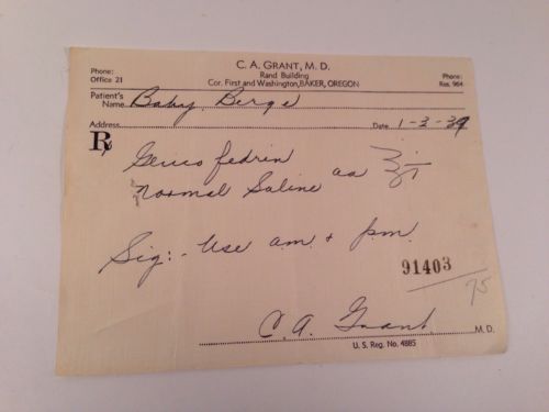 Title (ebay affiliate link): 1939 RX Doctor C.A.Grant M.D. Medical Prescription Baker,Oregon OR Phone 964