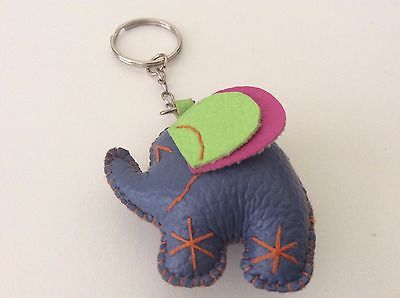 Vtg Folk Art Keyring Elephant Keyring PU Leather keychain Small Doll Gift