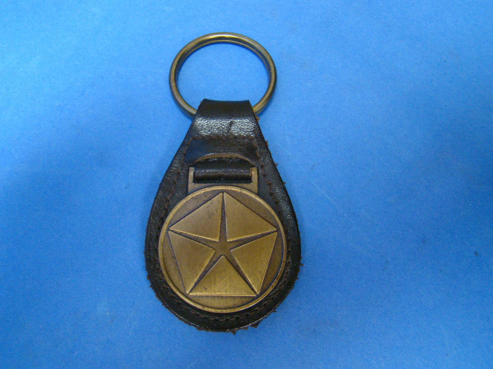 VINTAGE 1970'S CHRYSLER KEY FOB BROWN LEATHER & BRASS KEY CHAIN CUDA CHALLENGER?