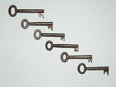 6 SMALL ANTIQUE METAL KEYS FOR LARGER WRITING SLOPE BOX or SMALL FURNITURE