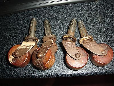 Matching Set of 4 Antique Furniture Casters 1" Wood Wheels Hardware Rollers Vtg