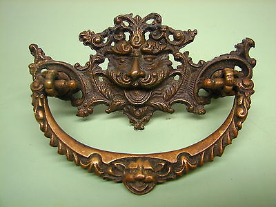Antique Cast Brass Lion Head Face Drawer Pull Handle Vtg Furniture Hardware