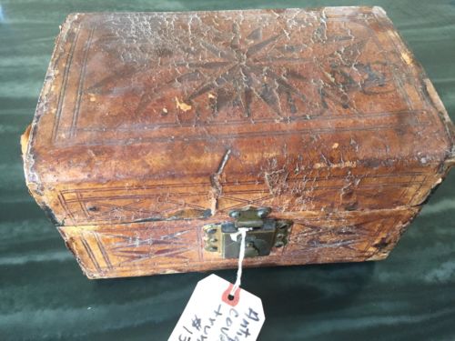 Title (ebay affiliate link): Antique Doll Chest - Trunk Leather Covered Box Estate Find