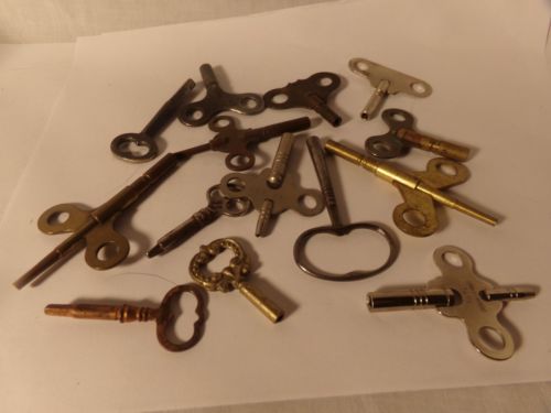 Title (ebay affiliate link): 14 ANTIQUE CLOCK KEYS-BRASS-CAST IRON-OTHERS-ALL DIFF-NR!