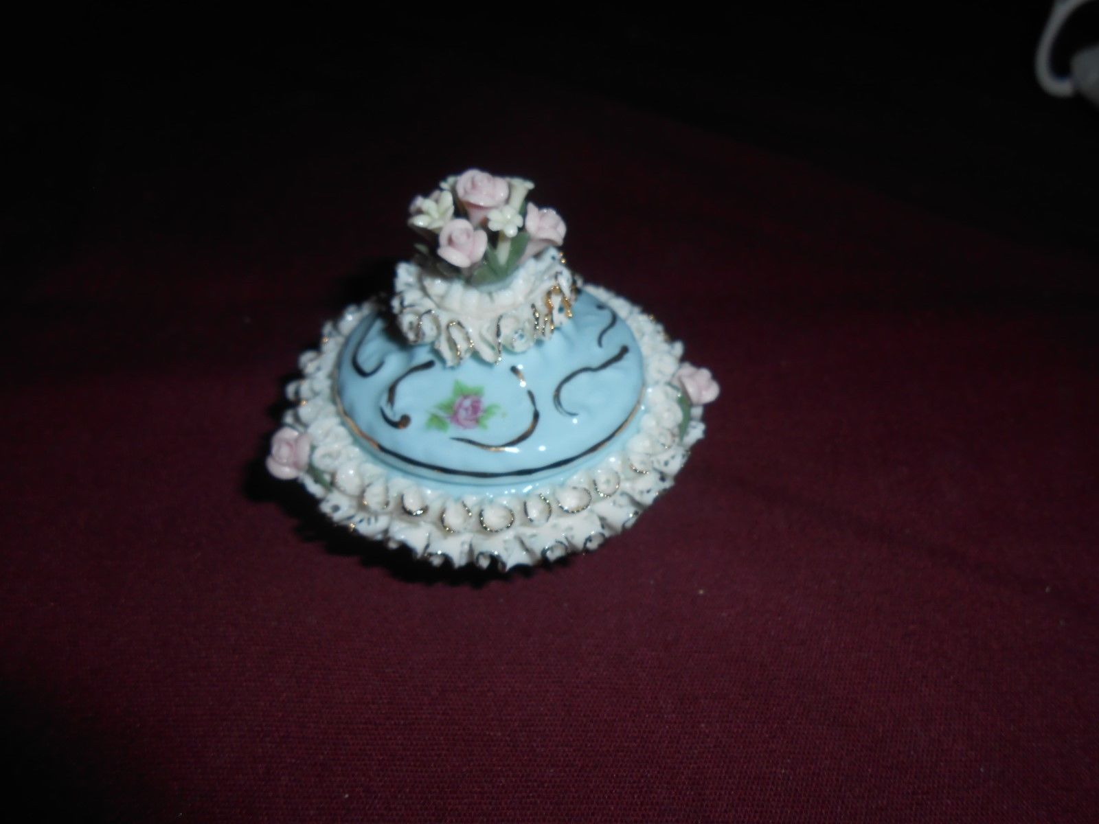 Title (ebay affiliate link): BEAUTIFUL BISQUE VICTORIA CAPODIMONTE ROUND BLUE GLAZED TRINKET BOX -ITALY