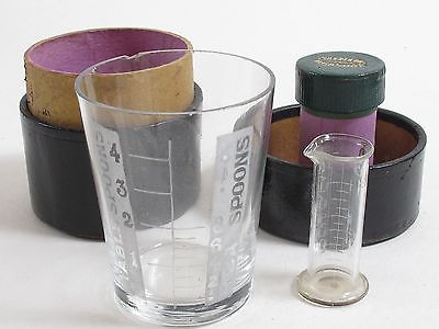 ANTIQUE MEDICINE GLASS & MINIM MEASURE IN ORIGINAL HOLDER