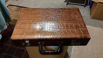 Vintage Upjohn Pharmaceutical Medical Briefcase Alligator Embossed Leather