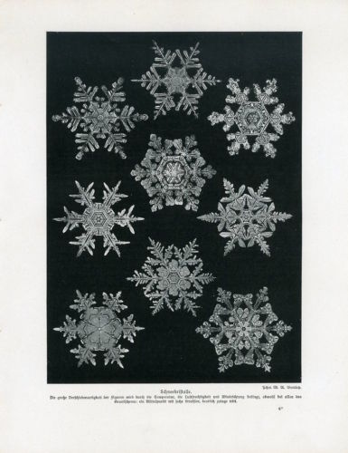 Title (ebay affiliate link): c1900 SNOWFLAKE CRYSTAL FORMS Antique Litho Print W.Bolsche