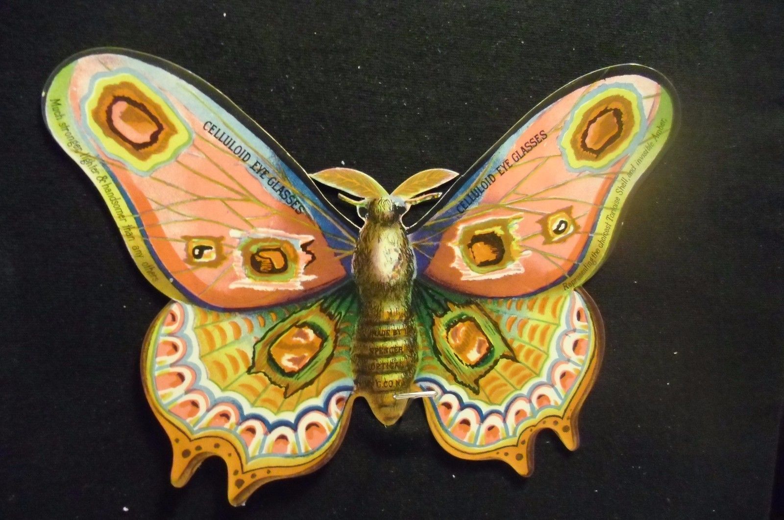 victorian trade card - CELLULOID EYE GLASSES - BUTTERFLY DIE CUT