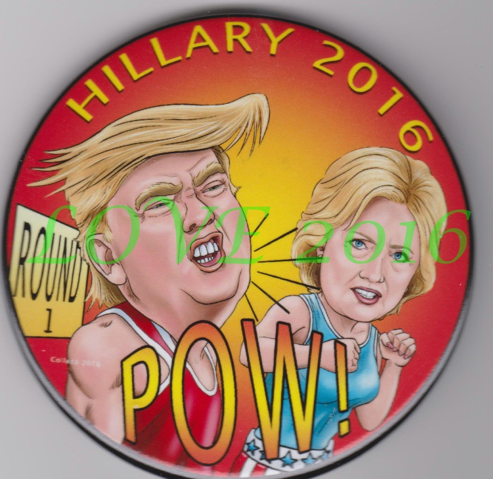 HILLARY CLINTON & DONALD TRUMP POW!! POLITICAL BUTTON PINBACK 3 INCH BUTTON PIN