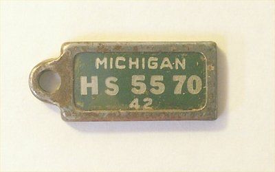Title (ebay affiliate link): 1942 Michigan DAV License Plate Tag - Rare - Keychain Tag - Vintage - Original