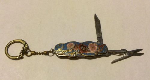 Title (ebay affiliate link): Vintage Brass Painted Enamel Oriental Floral Design Keychain Knife w/ Scissors