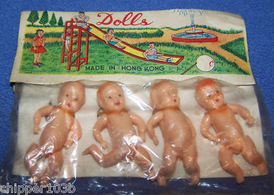 DIME STORE MINI HARD PLASTIC BABY DOLLS - 1950'S - NOS