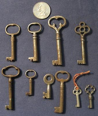 TEN (10) ANTIQUE SKELETON KEYS BARREL END VINTAGE FURNITURE CABINET KEYS LOT