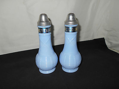 VINTAGE BLUE DELPHITE BASKETWEAVE SALT & PEPPER SHAKERS EUCLID COFFEE CO