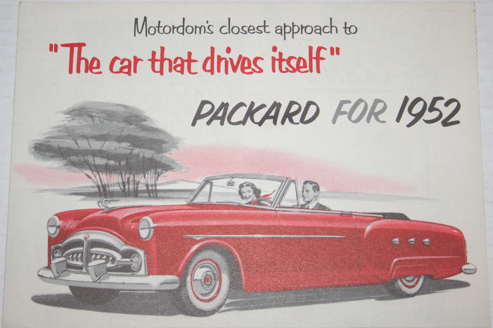 Title (ebay affiliate link): 1952 PACKARD, The Car that Drives Itself, foldout ORIGINAL sales brochure
