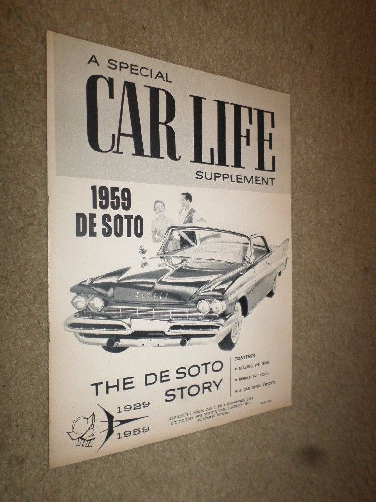 Title (ebay affiliate link): 1959 De Soto Car Dealer Sales Brochure (Car Life Magazine Reprint)
