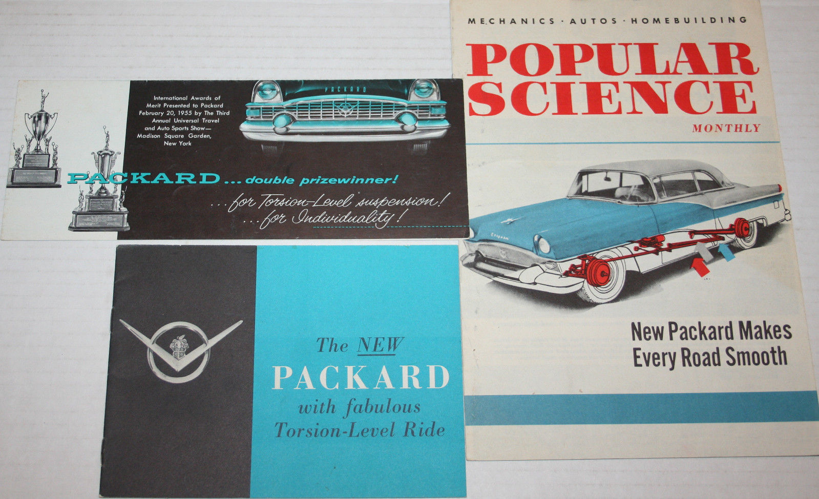 Title (ebay affiliate link): 3 FOR 1 1955 PACKARD Road Test & Torsion Level Ride ORIGINAL sales Brochures