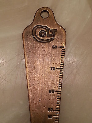 COLT LOGO BORE GUAGE KEY CHAIN BRASS CALIBER AND MILLIMETER TOOL ANTIQUE PATINA