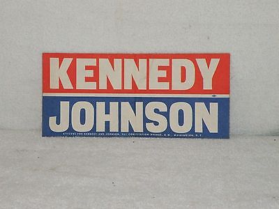 Original Kennedy Johnson Bumper Sticker 1960 Election Nixon