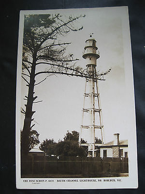 ANTIQUE REAL PHOTOGRAPH POSTCARD SOUTH CHANNEL LIGHTHOUSE Nr ROSEBUD AUSTRALIA