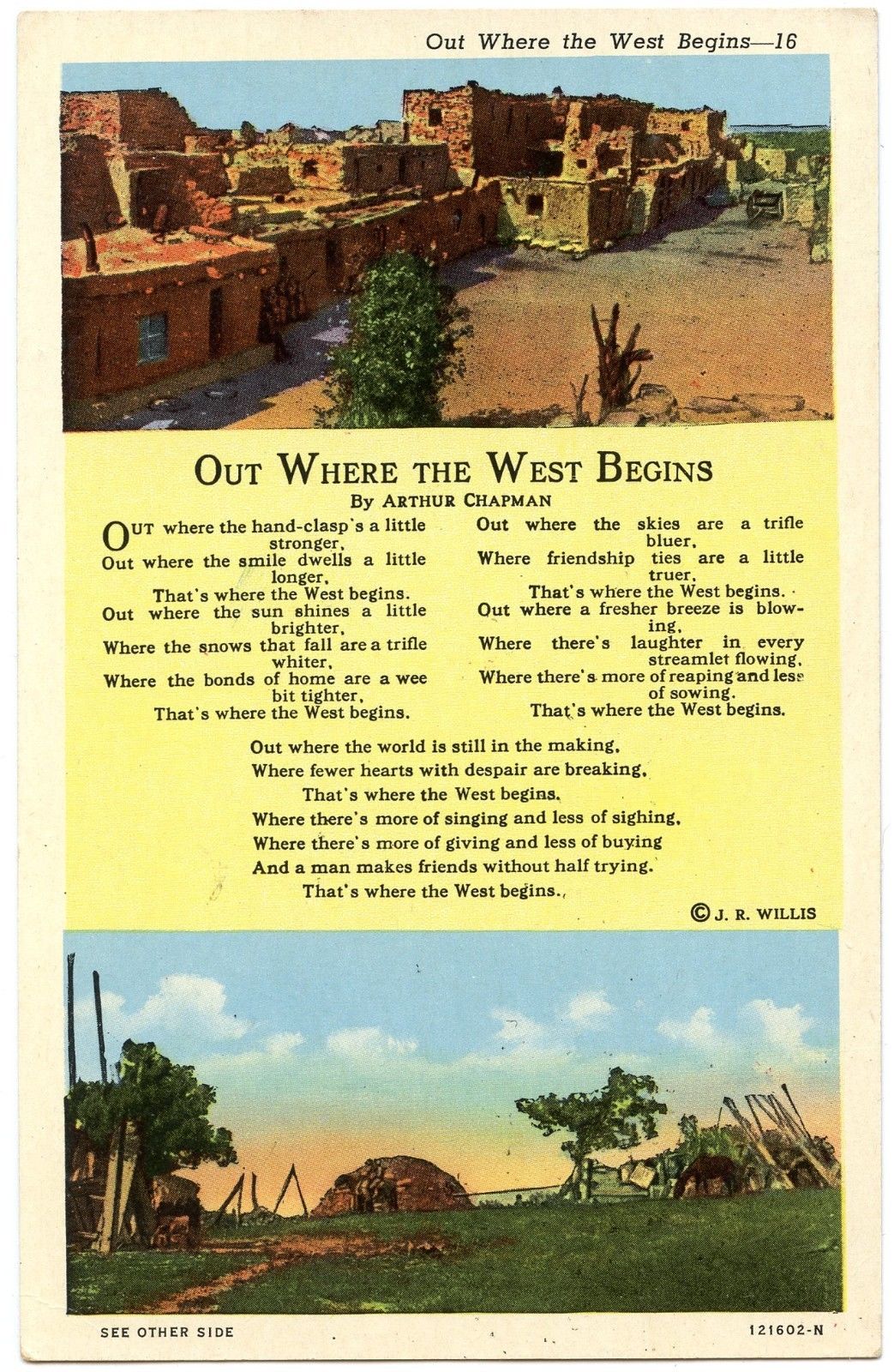 Title (ebay affiliate link): B3976 "Out Where The West Begins" Poem Pueblo Hogan Old Teich Postcard No.121602