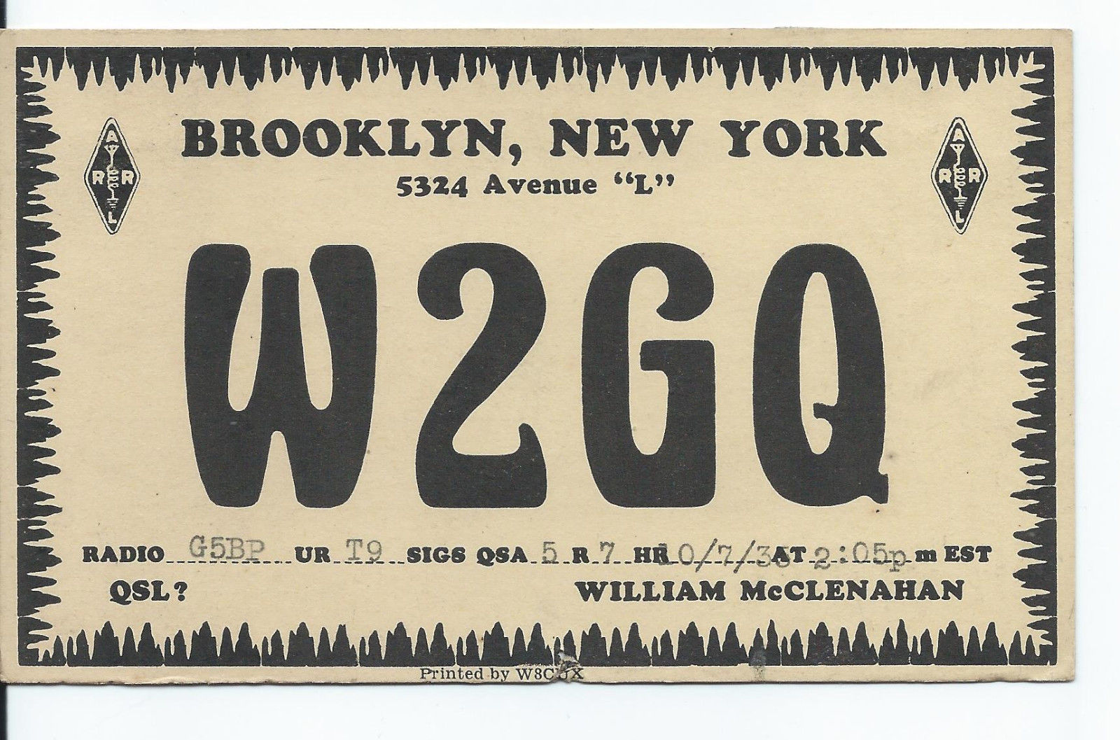 QSL 1935 Brooklyn New York City W2GQ radio card