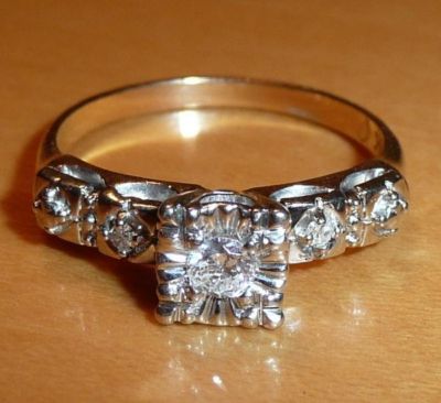 Title (ebay affiliate link): Antique 14K White/Yellow Gold Diamond Engagement Ring