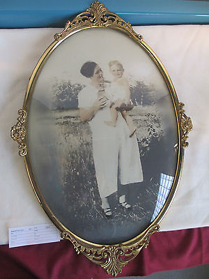 VINTAGE PICTURE FRAME WITH BOWED GLASS and HAND COLORED PHOTO