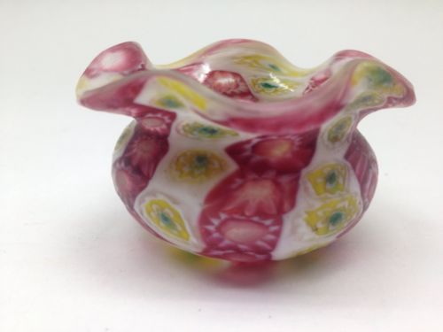Small Antique Vintage Miniature Milefiori Ruffled Vase Rare