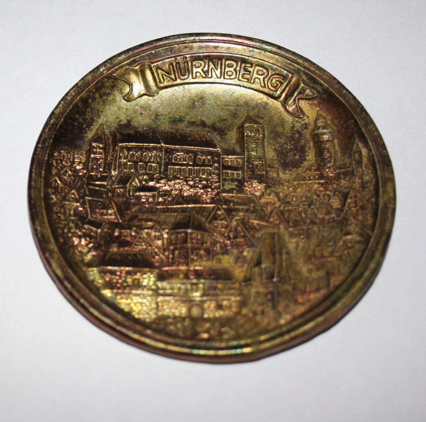 Vintage Nurnberg Metal Wall Plaque Marked 90, GES. GESCH. German Souvenir