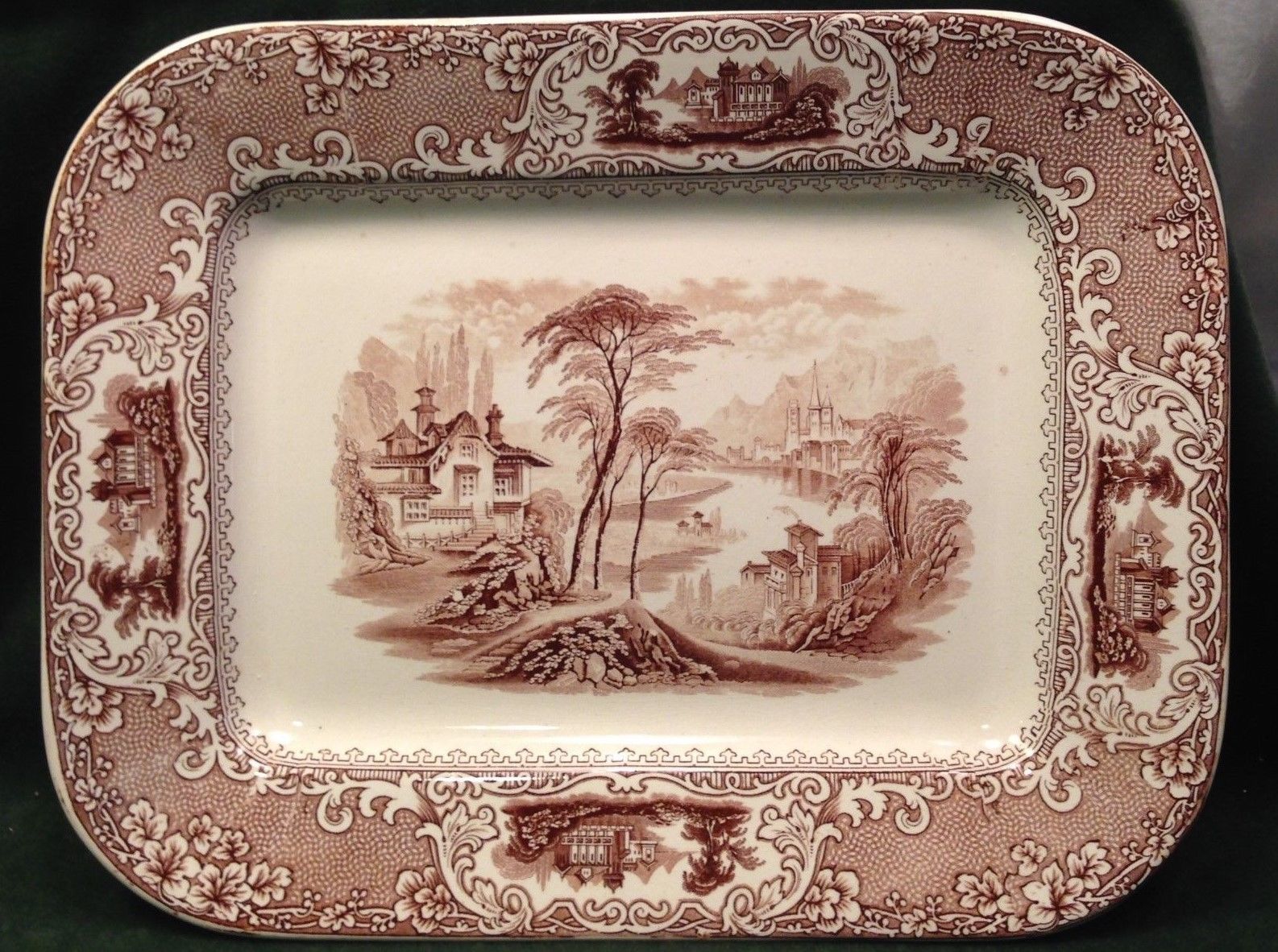 Title (ebay affiliate link): Antique Brown Transferware Ironstone Platter, Lucerne by Davis & Hanley England