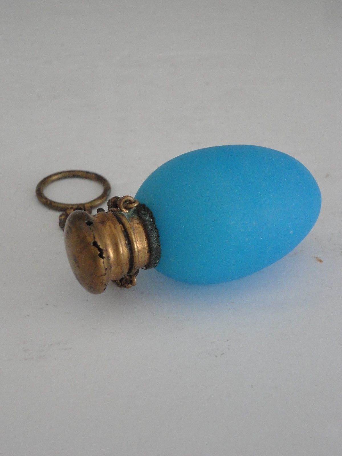 Title (ebay affiliate link): Antique French Blue Opaline Glass Egg Perfume Bottle Chantelaine Palais Royale