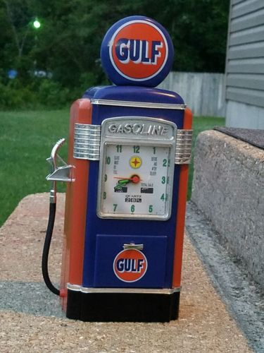 Title (ebay affiliate link): Gulf Antique Look Gas Pump with Clock With Alarm and piggy bank