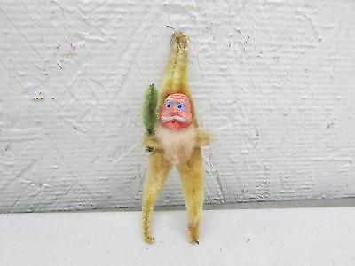 Vintage Christmas Yellow Chenille Clay Compo Face Santa Claus Ornament