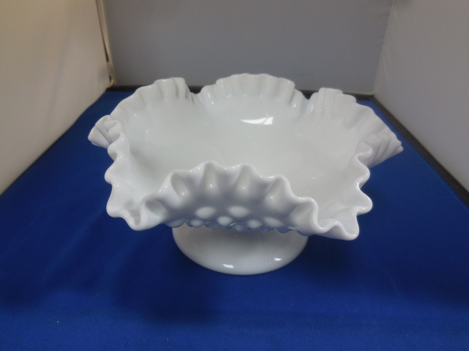 Title (ebay affiliate link): Fenton White Milk Glass Hobnail Platform Dish Doubled Crimped Ruffled Rim 8" W