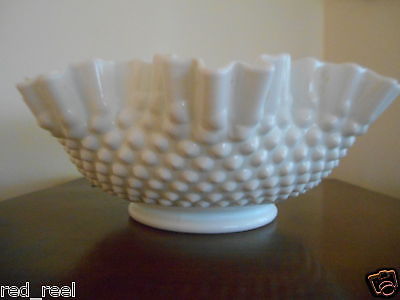 VTG. LARGE WHITE HOBNAIL MILK GLASS RUFFLED EDGE BOWL