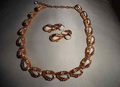 Rare Hattie Carnegie Gold, diamond, milk glass Stones choker necklace and earrin