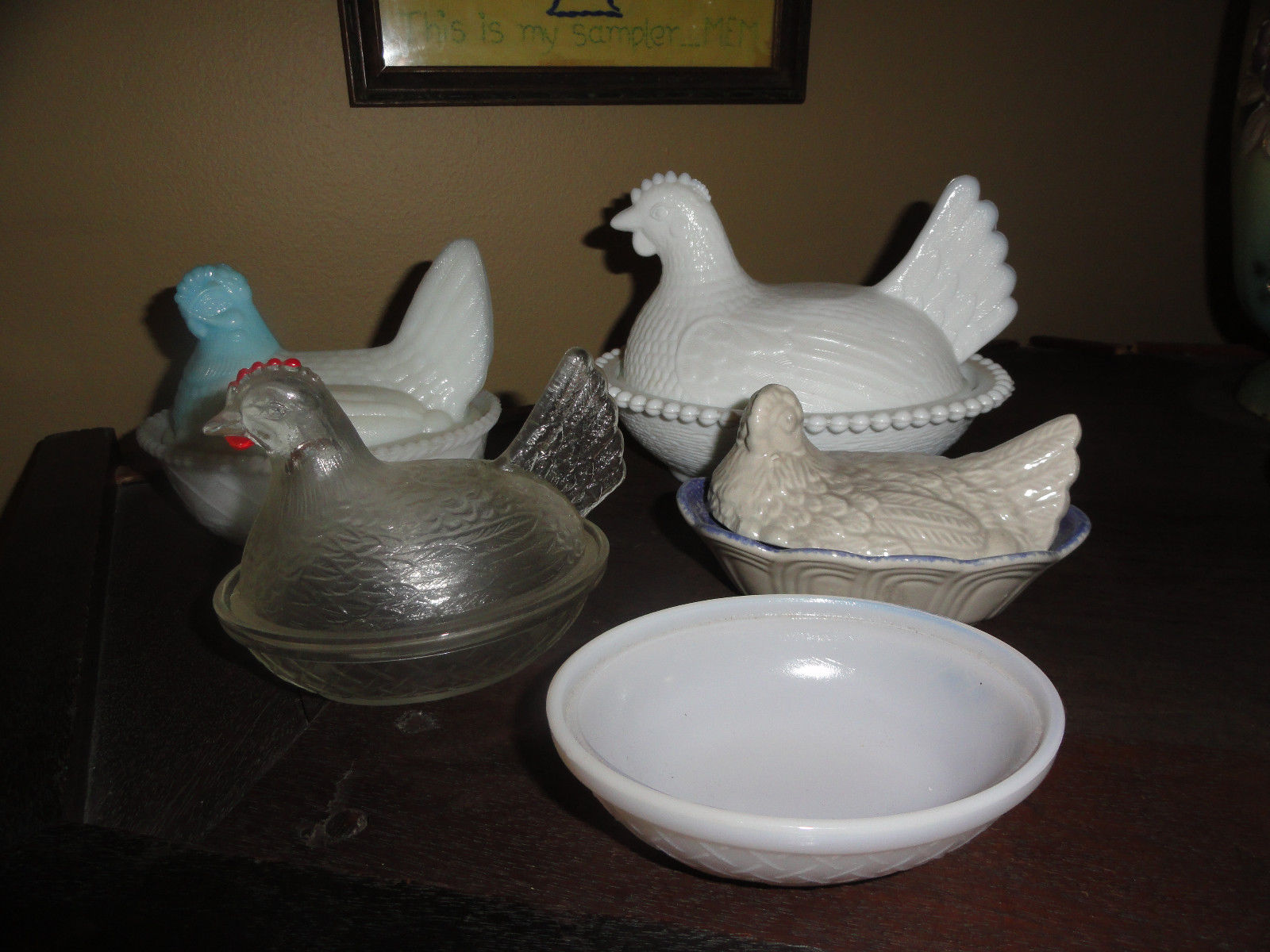 Vintage Milk Glass, other, Hens Baskets, LOT