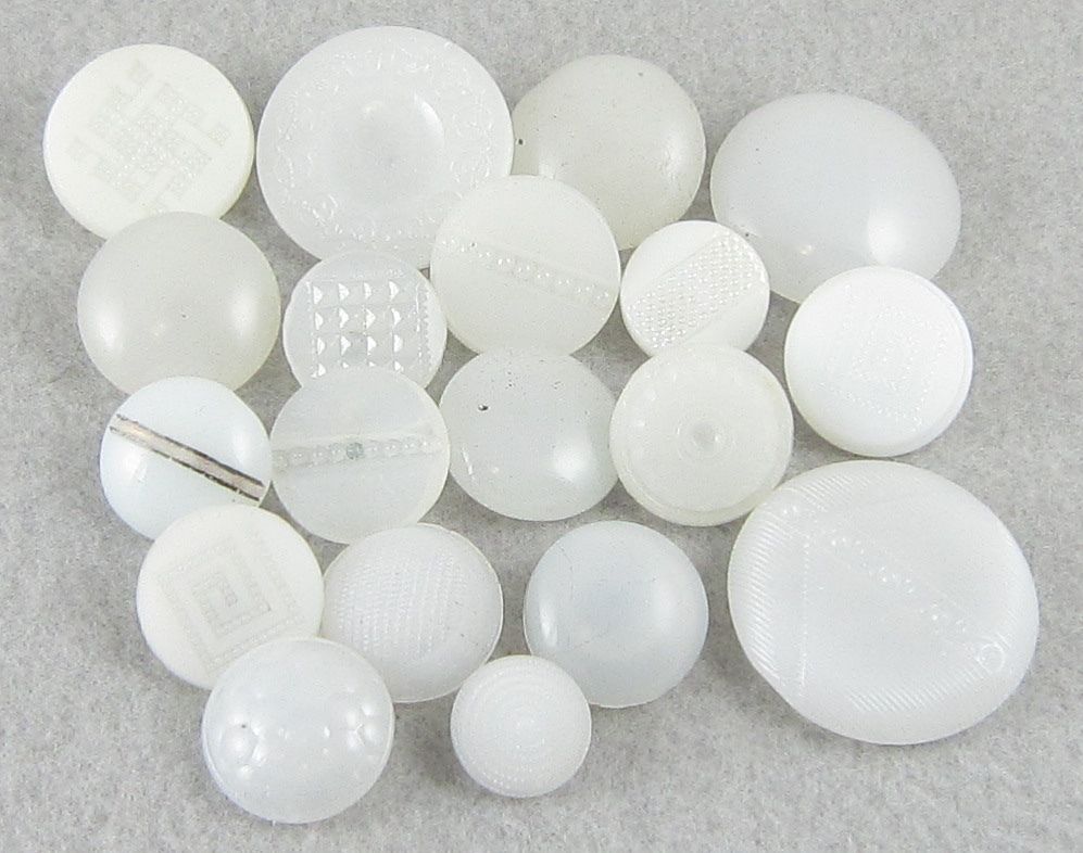 Antique Vintage Glass Buttons ~ White Clambroth Milkglass ~ Mixed Designs, Sizes