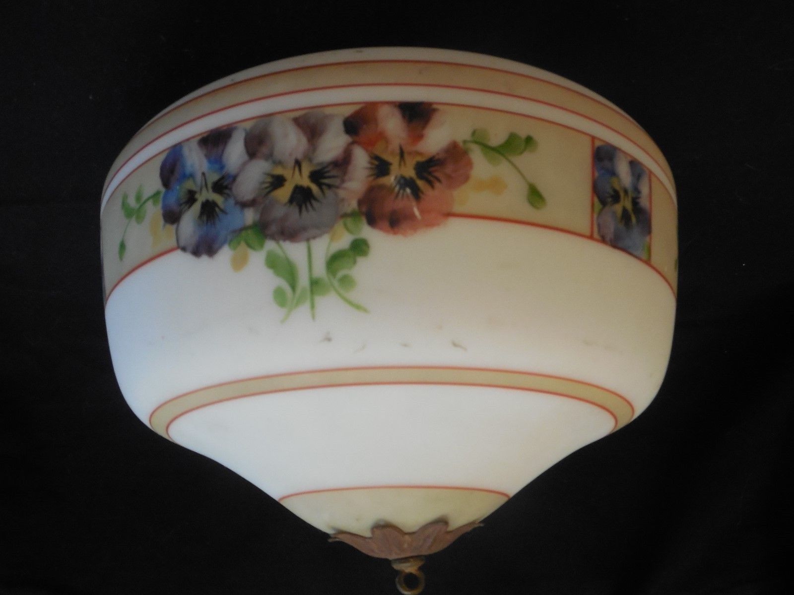 Title (ebay affiliate link): Vintage Celling Lamp Shade Purple Pansies on a Milk Glass 16 in. Needs clean