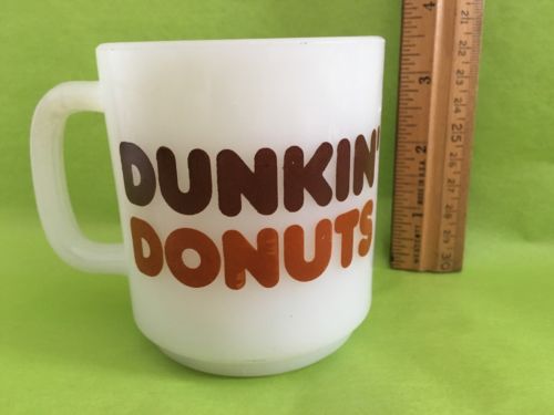 Title (ebay affiliate link): Vintage 1970s DUNKIN DONUTS COFFEE MUG Glasbake MILK GLASS Doughnuts