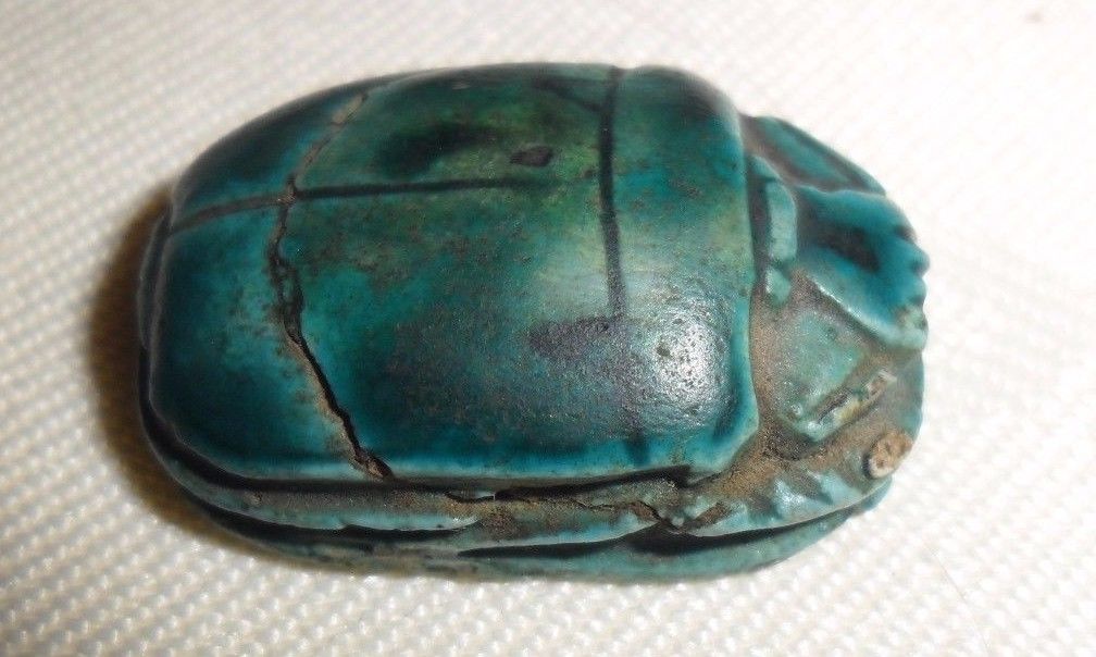 ANTIQUE EGYPTIAN FAIENCE SCARAB BEETLE