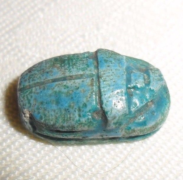 ANTIQUE EGYPTIAN FAIENCE SCARAB BEETLE